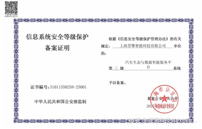 近日,翌擎智能科技通过2025年度信息系统安全等级保护三级认证(简称“等保三级认证”),标志着翌擎在技术攻防、数据保护、应急响应等方面已经达到国家规定的高级别安全标准,为公司业务的稳健发展和客户的信息安全提供坚实保障。