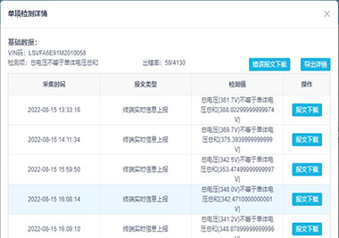 1)提供车辆上传报文数据项的合规性校验,直观展示报文合格率。